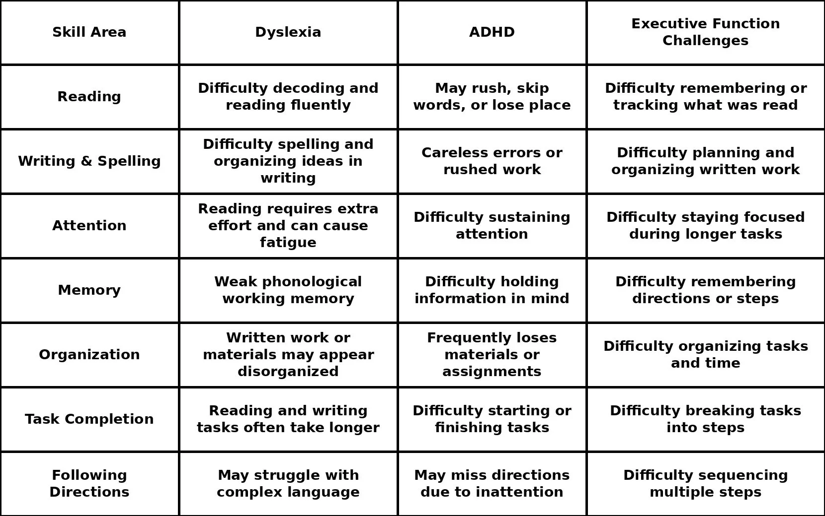 Dyslexia, ADHD, and Executive Functioning